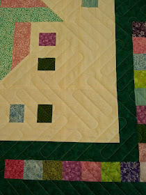 This baby quilt is a pattern from www.kitchentablequilting.com- called Deep Blue Sea. The pattern example is quilted with wavy "water" lines, so I was asked to quilt it similar to that.